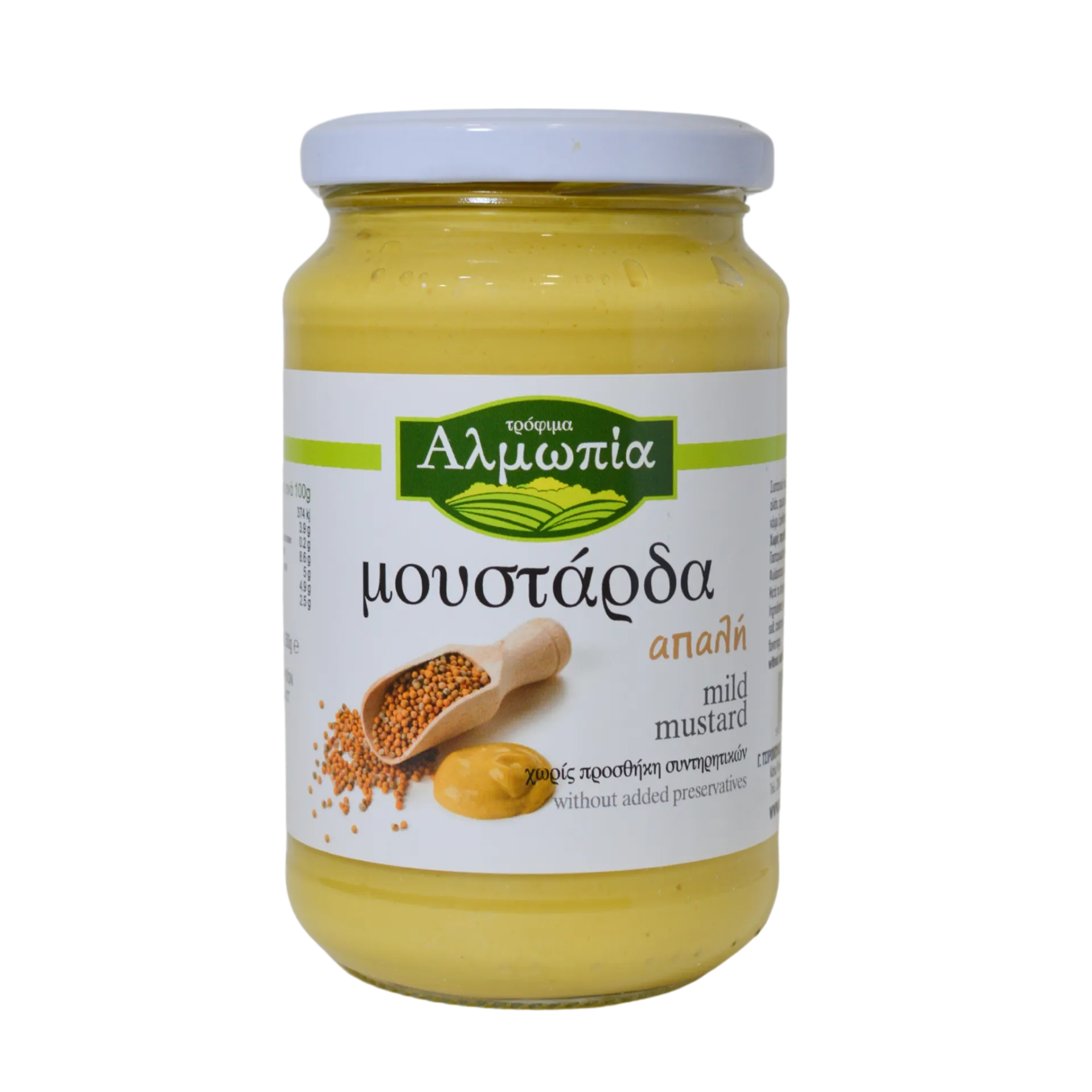 Συστατικά: Νερό, σιναπόσπορος, ξύδι, ζάχαρη, αλάτι.